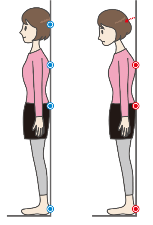 ☑ 壁に背中をつけて立つと、後頭部が壁につかない